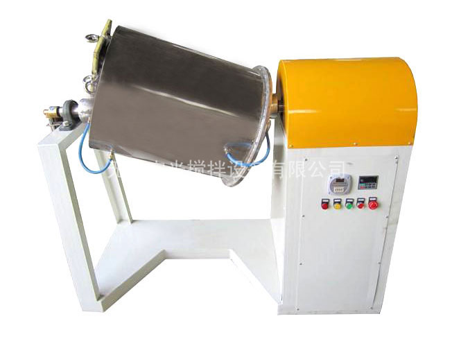 研磨桶與水平線呈34°夾角傾斜,內襯聚氨酯膠,耐磨性強,運行平穩,物料無污染,可使用聚氨酯復合球為磨介。使幾種不同粉料得到快速均勻地混合。桶體制作成八角形使物料和磨介在桶內的運動狀態跟普通滾筒式球磨機發生改變,從而提高研磨與混合效率。在設計上,考慮裝卸料方便,滾筒位置相對提高,并設有網紋鋼板鋪設的操作平臺和扶梯。